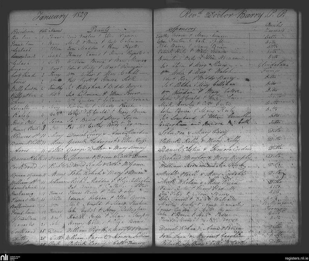 Fermoy; County of Cork; Diocese of Cloyne. Baptisms, Jan. 1829