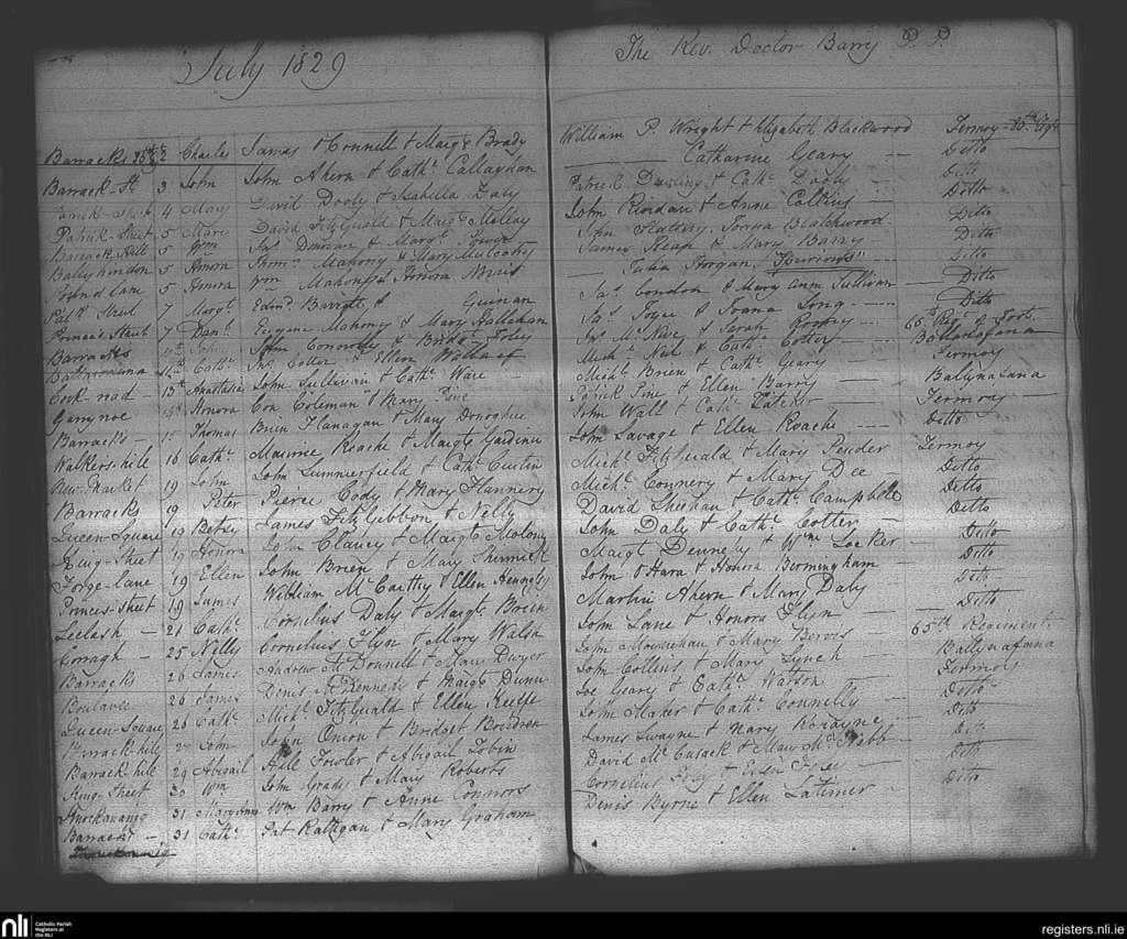 Fermoy; County of Cork; Diocese of Cloyne. Baptisms, July 1829