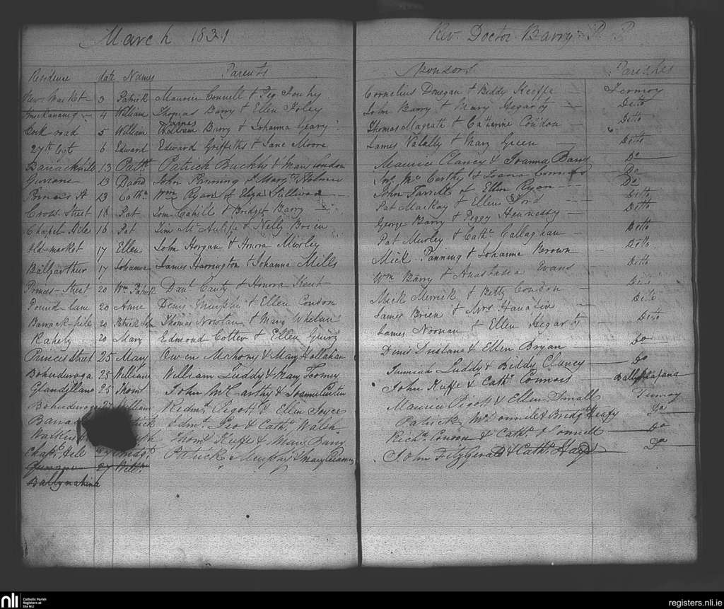 Fermoy; County of Cork; Diocese of Cloyne. Baptisms, Mar. 1831