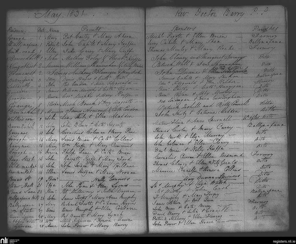 Fermoy; County of Cork; Diocese of Cloyne. Baptisms, May 1831