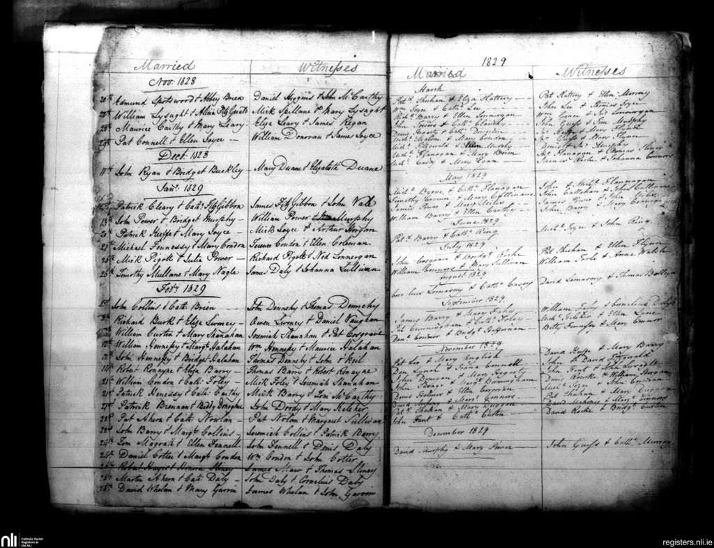 Fermoy; County of Cork; Diocese of Cloyne. Marriages, Nov. 1828 to Dec. 1829