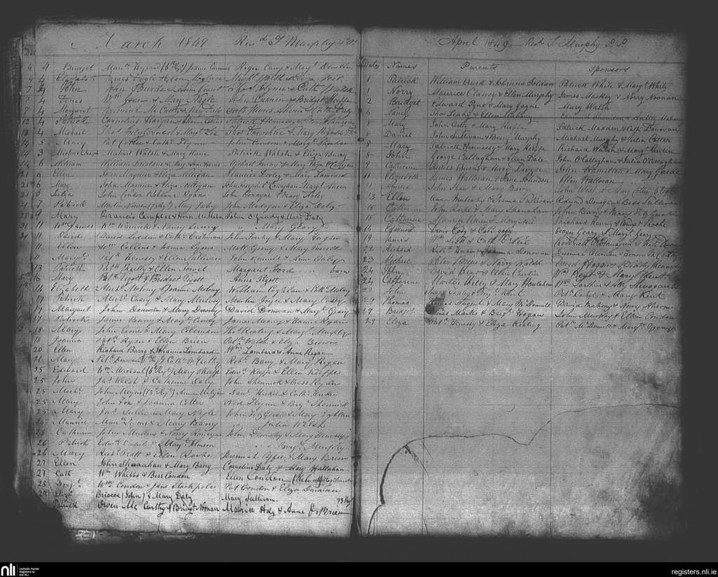 Fermoy; County of Cork; Diocese of Cloyne. Baptisms, Mar. 1849 to Apr. 1849