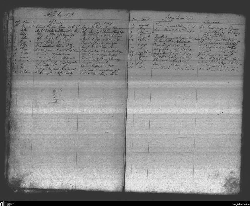 Fermoy; County of Cork; Diocese of Cloyne. Baptisms, Nov. 1849 to Dec. 1849