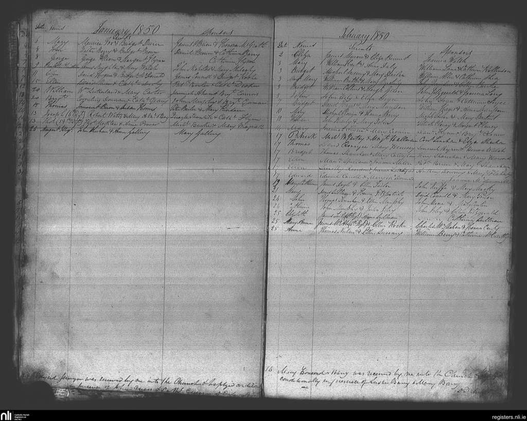 Fermoy; County of Cork; Diocese of Cloyne. Baptisms, Jan. 1850 to Feb. 1850