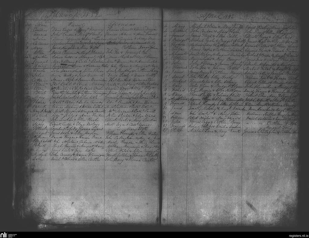 Fermoy; County of Cork; Diocese of Cloyne. Baptisms, Mar. 1852 to Apr. 1852