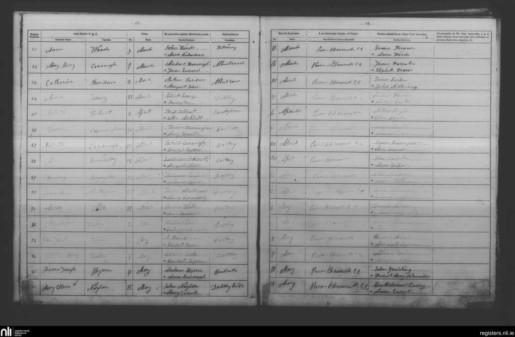 Dalkey; County of Dublin; Archdiocese of Dublin. Baptisms, Mar. 1862 to May 1862