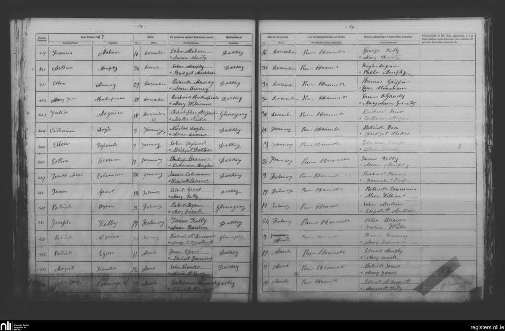 Dalkey; County of Dublin; Archdiocese of Dublin. Baptisms, Dec. 1866 to Mar. 1867