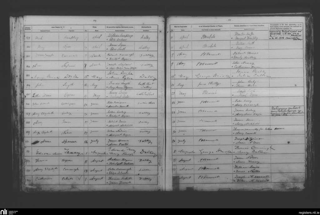 Dalkey; County of Dublin; Archdiocese of Dublin. Baptisms, Apr. 1875 to Aug. 1875