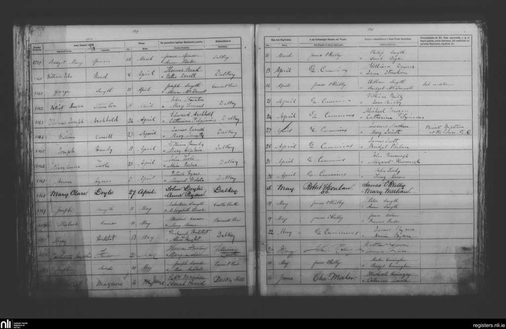 Dalkey; County of Dublin; Archdiocese of Dublin. Baptisms, Mar. 1878 to June 1878