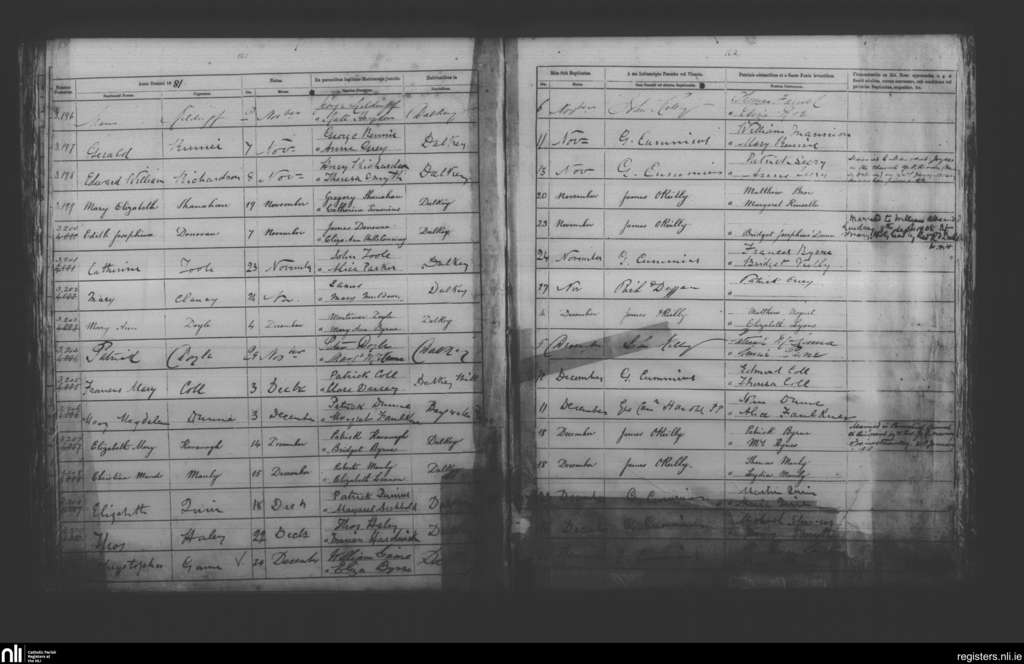 Dalkey; County of Dublin; Archdiocese of Dublin. Baptisms, Nov. 1881 to Dec. 1881