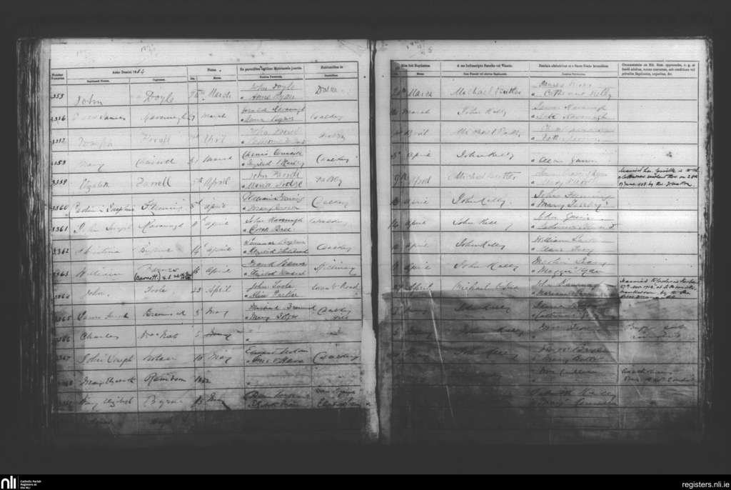 Dalkey; County of Dublin; Archdiocese of Dublin. Baptisms, Mar. 1884 to May 1884