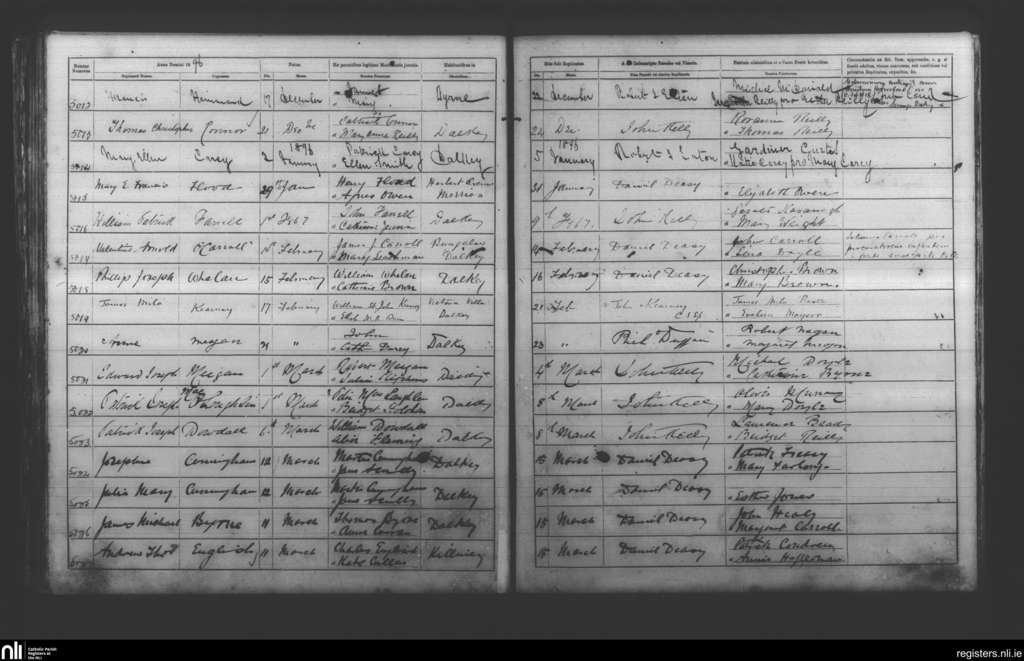 Dalkey; County of Dublin; Archdiocese of Dublin. Baptisms, Dec. 1895 to Mar. 1896