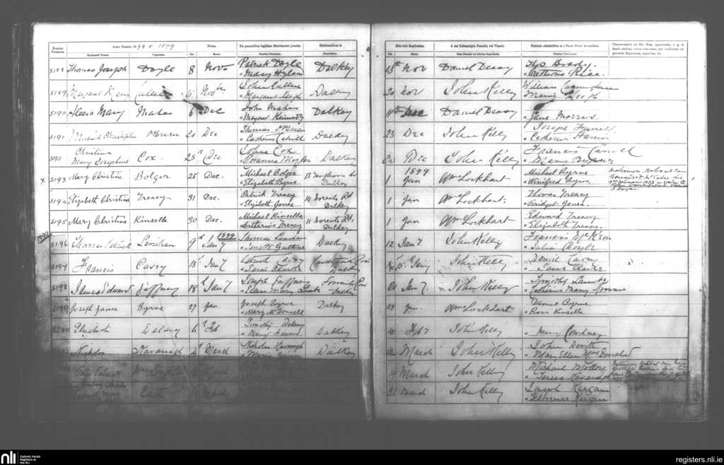 Dalkey; County of Dublin; Archdiocese of Dublin. Baptisms, Nov. 1898 to Mar. 1899