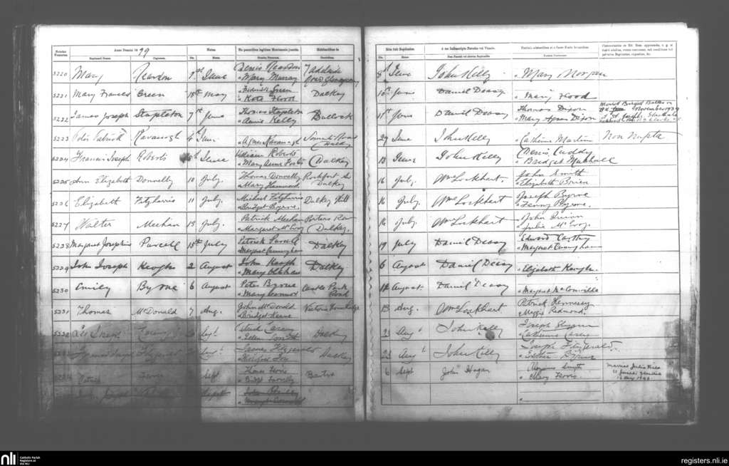 Dalkey; County of Dublin; Archdiocese of Dublin. Baptisms, June 1899 to Sep. 1899