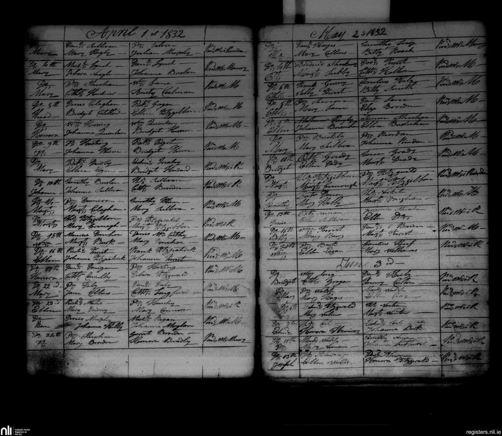 Freemount; County of Limerick, Cork; Diocese of Cloyne. Baptisms, Apr. 1832 to June 1832