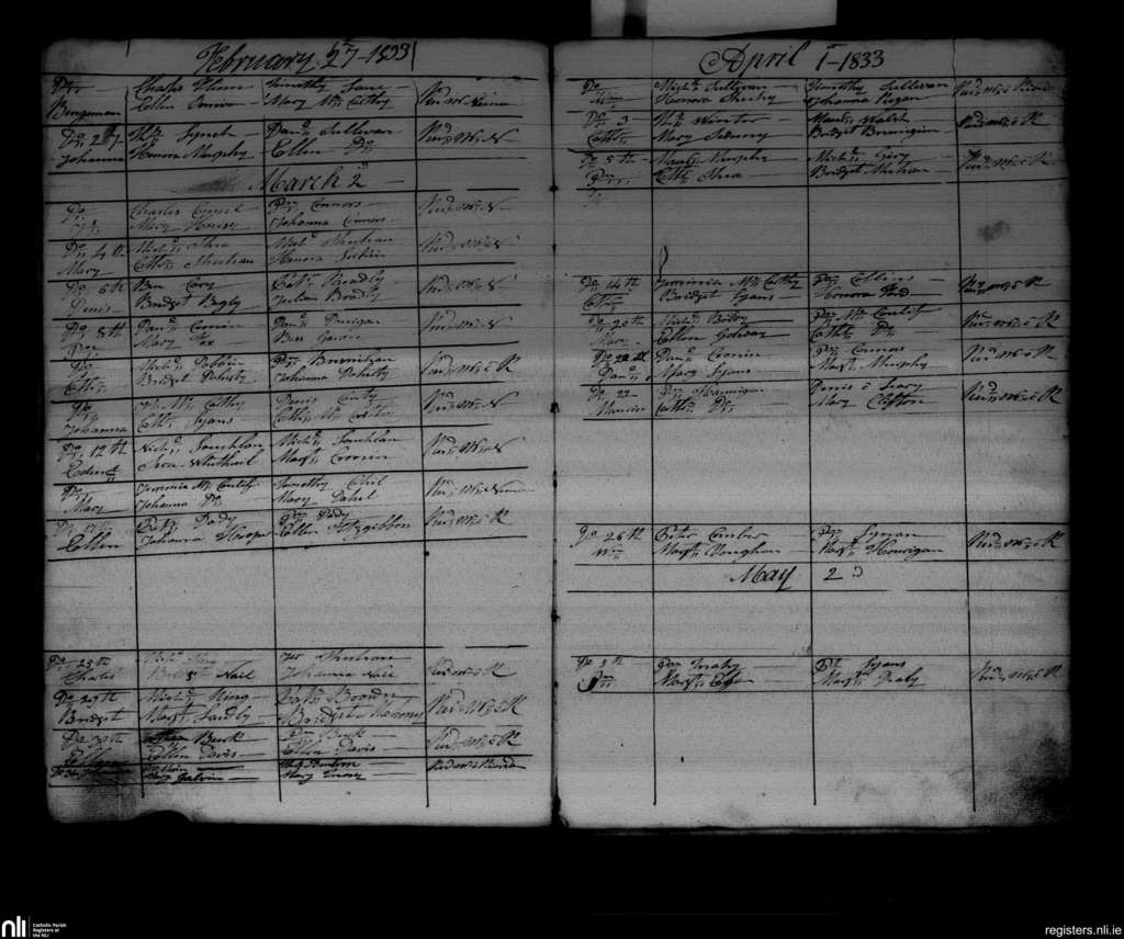 Freemount; County of Limerick, Cork; Diocese of Cloyne. Baptisms, Feb. 1833 to May 1833