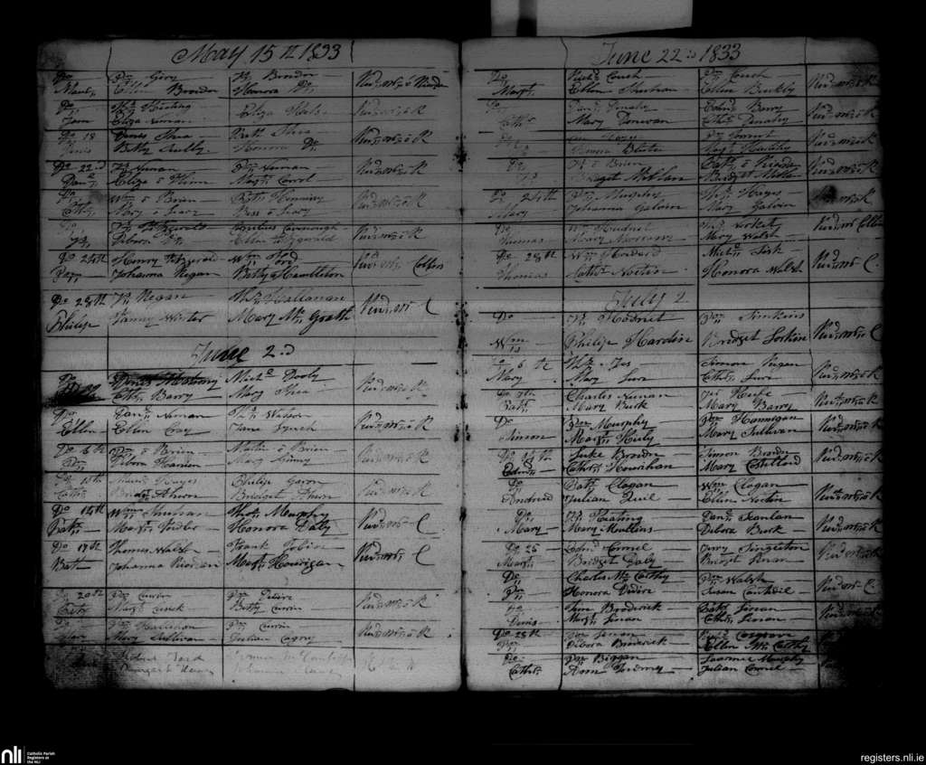 Freemount; County of Limerick, Cork; Diocese of Cloyne. Baptisms, May 1833 to July 1833