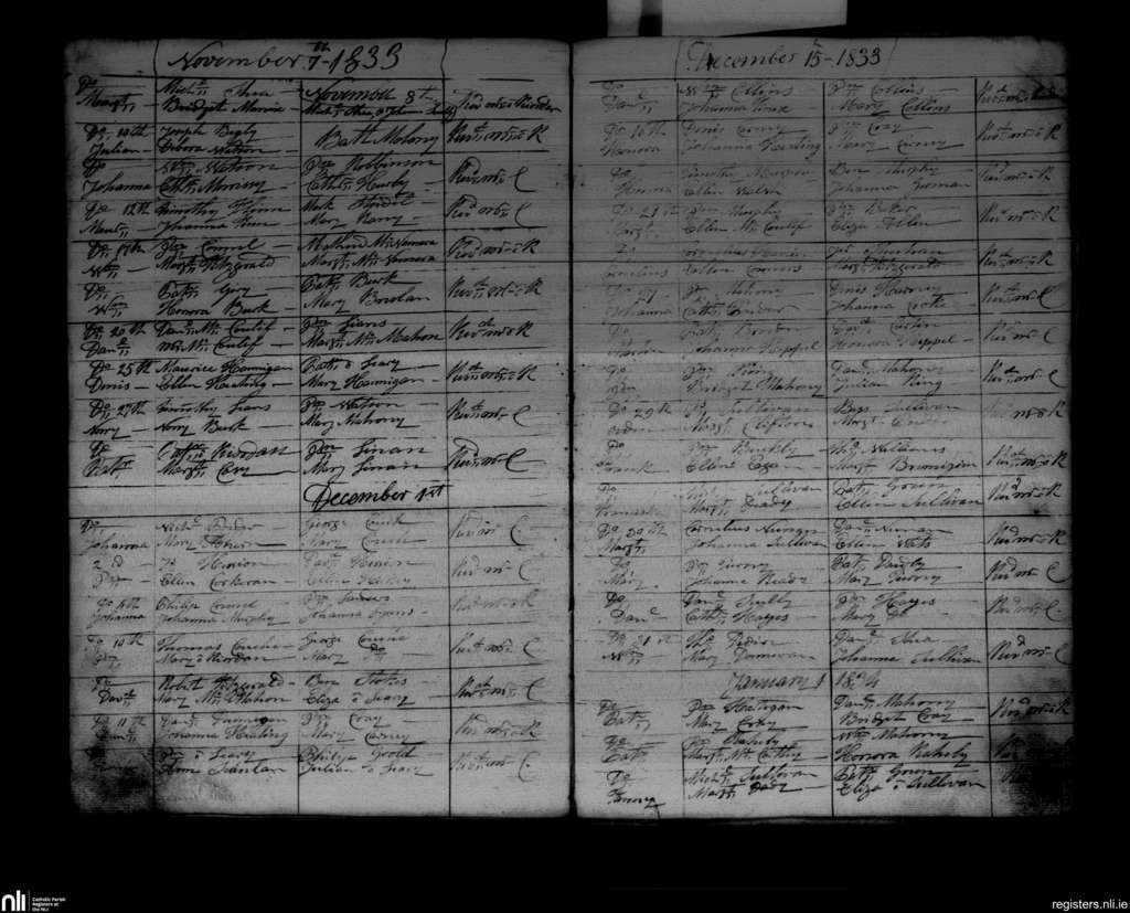 Freemount; County of Limerick, Cork; Diocese of Cloyne. Baptisms, Nov. 1833 to Jan. 1834