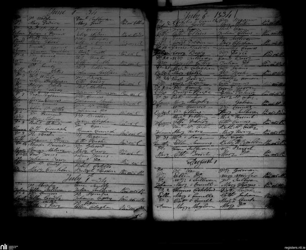 Freemount; County of Limerick, Cork; Diocese of Cloyne. Baptisms, June 1834 to Aug. 1834