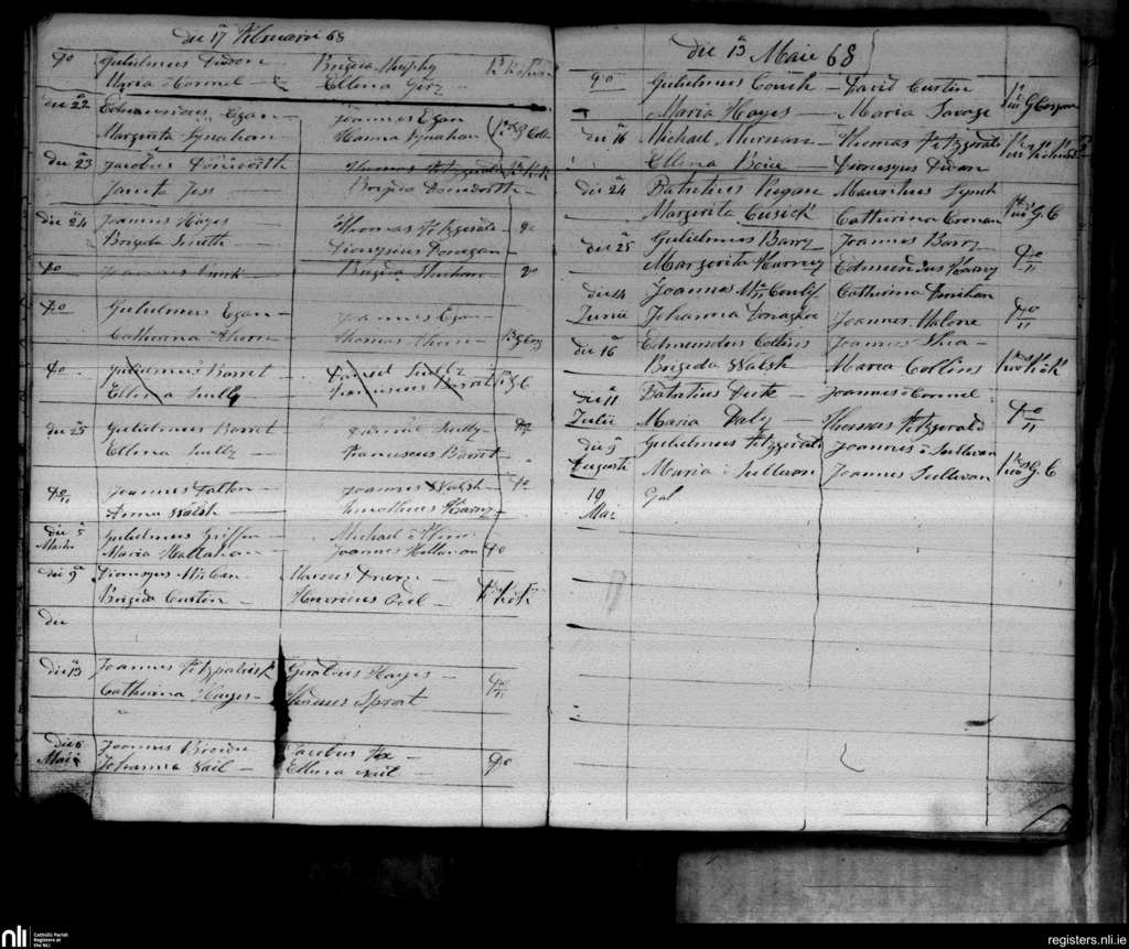 Freemount; County of Cork, Limerick; Diocese of Cloyne. Marriages, Feb. 1868 to Aug. 1868