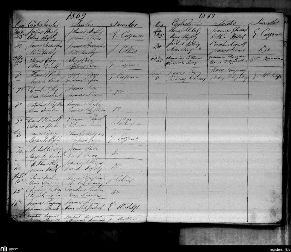 Freemount; County of Cork, Limerick; Diocese of Cloyne. Marriages, Jan. 1869 to Sep. 1869
