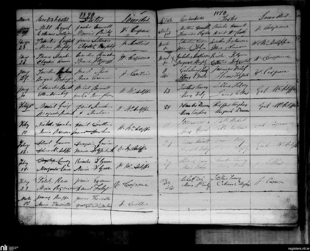 Freemount; County of Cork, Limerick; Diocese of Cloyne. Marriages, Jan. 1870 to Dec. 1870