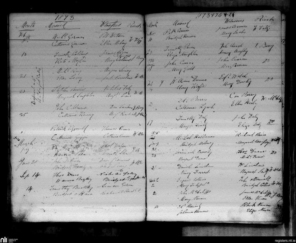 Freemount; County of Cork, Limerick; Diocese of Cloyne. Marriages, Feb. 1873 to Feb. 1875