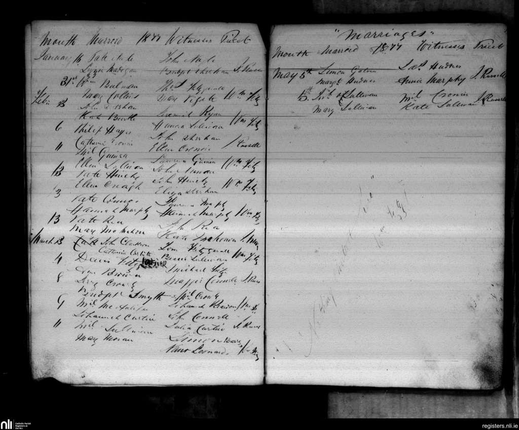 Freemount; County of Cork, Limerick; Diocese of Cloyne. Marriages, Jan. 1877 to May 1877