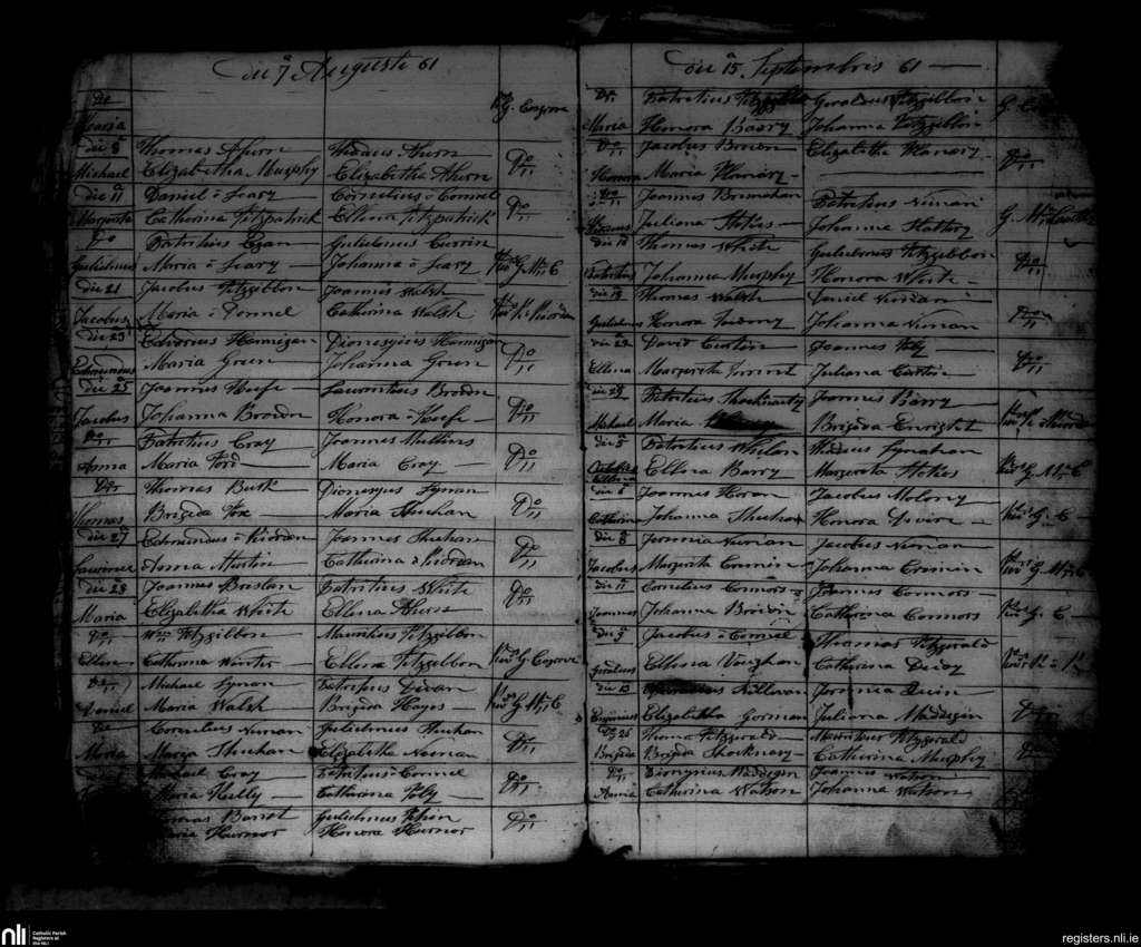 Freemount; County of Cork, Limerick; Diocese of Cloyne. Baptisms, Aug. 1861 to Oct. 1861