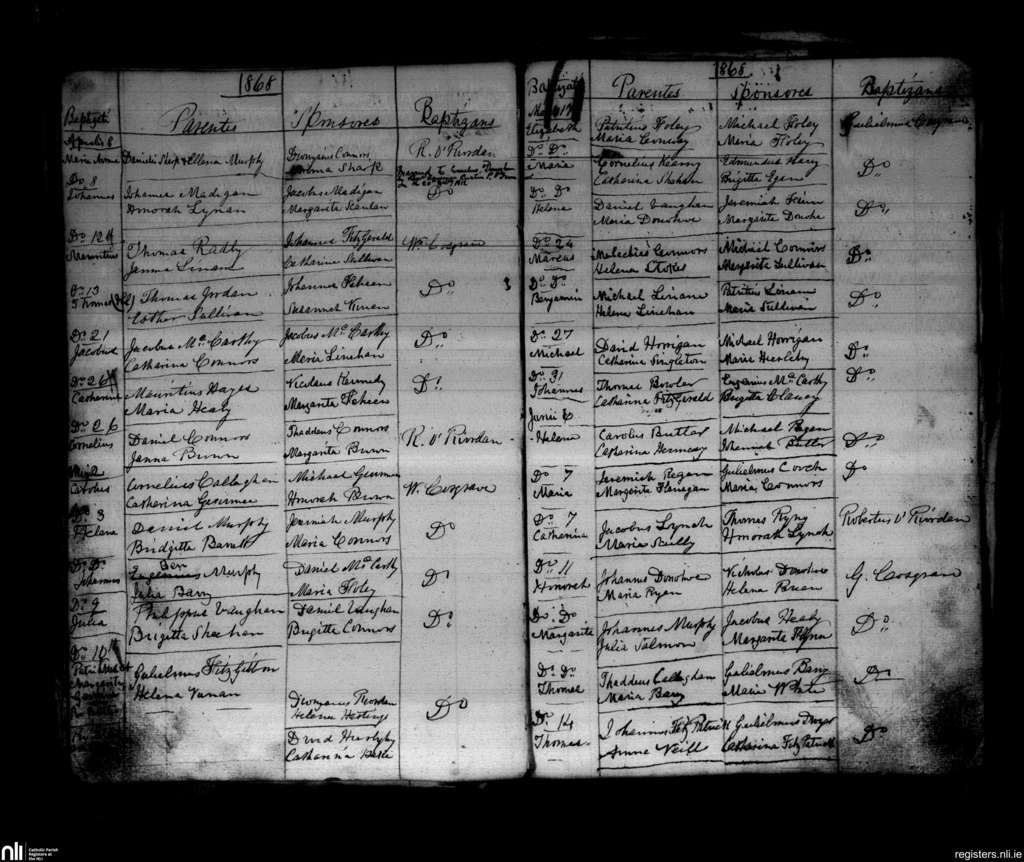 Freemount; County of Cork, Limerick; Diocese of Cloyne. Baptisms, Apr. 1868 to June 1868
