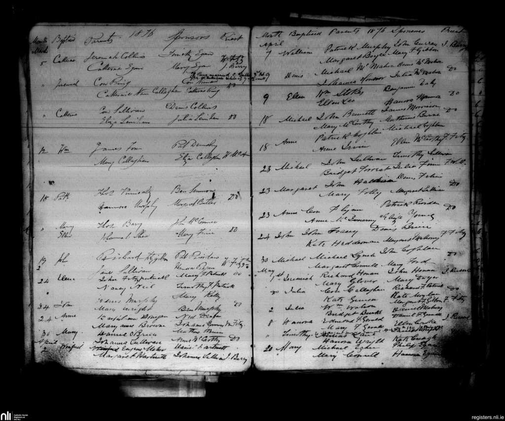 Freemount; County of Cork, Limerick; Diocese of Cloyne. Baptisms, Mar. 1876 to May 1876
