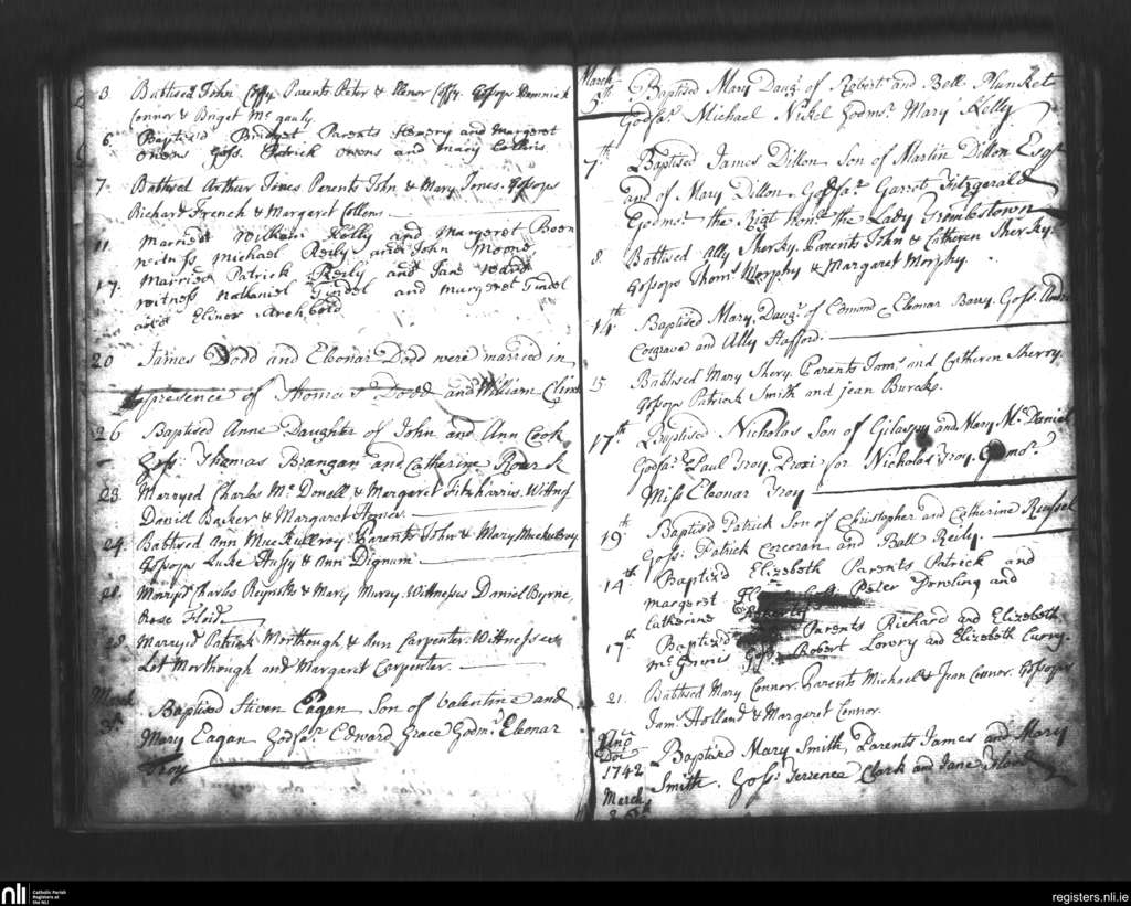 St. Mary's, Dublin city; County of Dublin; Archdiocese of Dublin. Baptisms, Marriages, Feb. 1742 to Mar. 1742