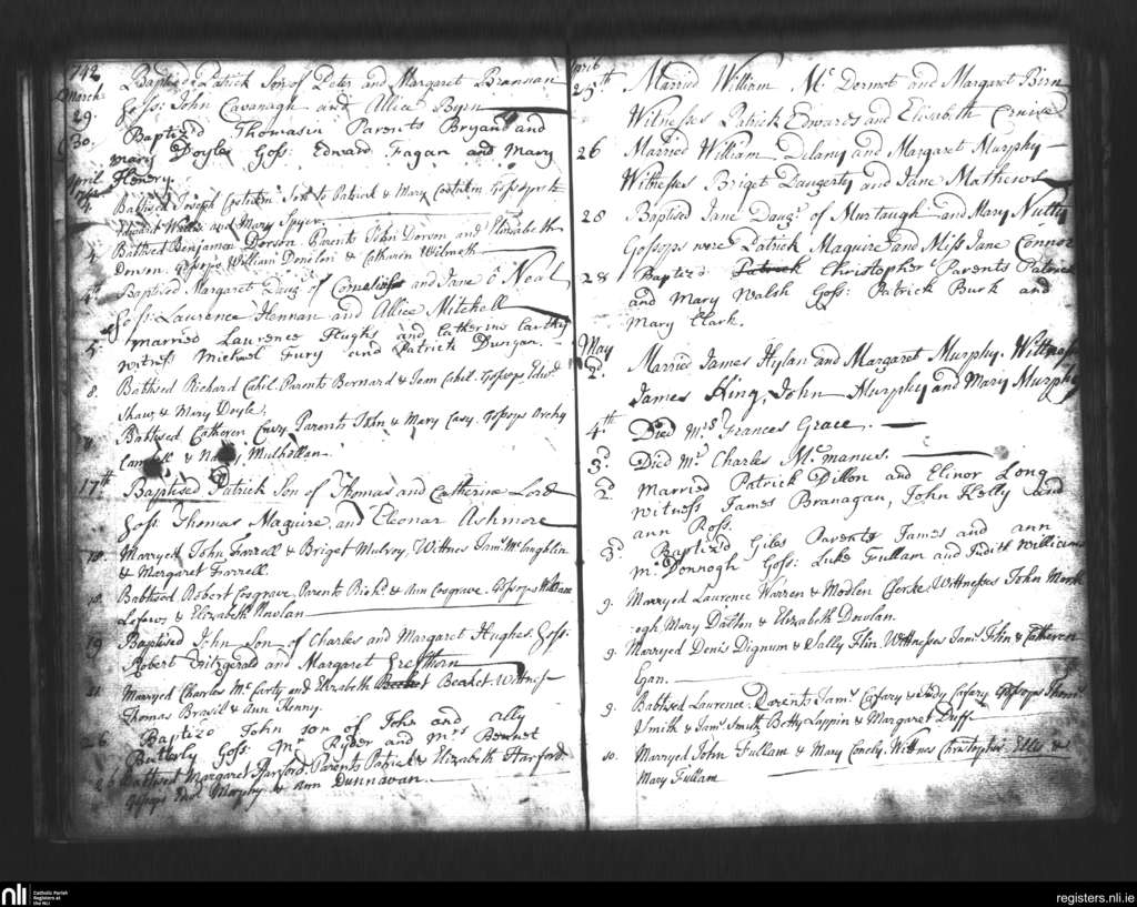 St. Mary's, Dublin city; County of Dublin; Archdiocese of Dublin. Baptisms, Marriages, Mar. 1742 to May 1742