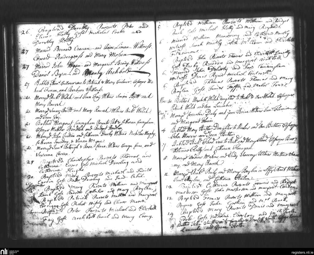 St. Mary's, Dublin city; County of Dublin; Archdiocese of Dublin. Baptisms, Marriages, Nov. 1742 to Dec. 1742