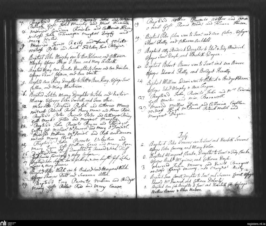 St. Mary's, Dublin city; County of Dublin; Archdiocese of Dublin. Baptisms, Marriages, June 1743 to July 1743
