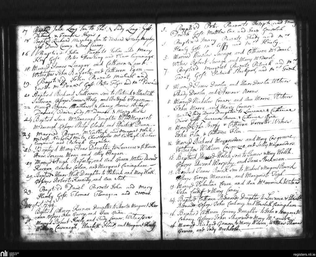 St. Mary's, Dublin city; County of Dublin; Archdiocese of Dublin. Baptisms, Marriages, June 1744 to July 1744