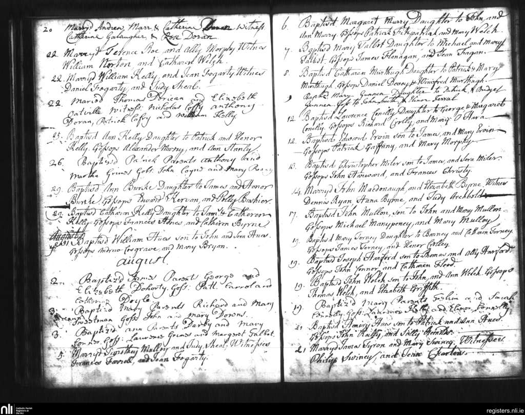 St. Mary's, Dublin city; County of Dublin; Archdiocese of Dublin. Baptisms, Marriages, July 1744 to Aug. 1744