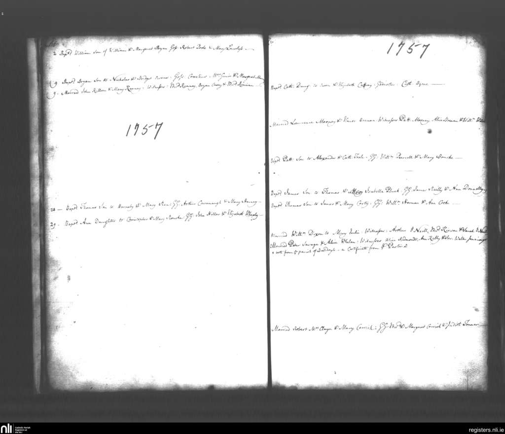 St. Mary's, Dublin city; County of Dublin; Archdiocese of Dublin. Baptisms, Marriages, Oct. 1757 to Nov. 1757