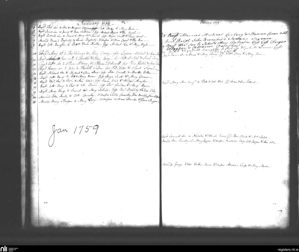 St. Mary's, Dublin city; County of Dublin; Archdiocese of Dublin. Baptisms, Marriages, Jan. 1759 to Feb. 1759