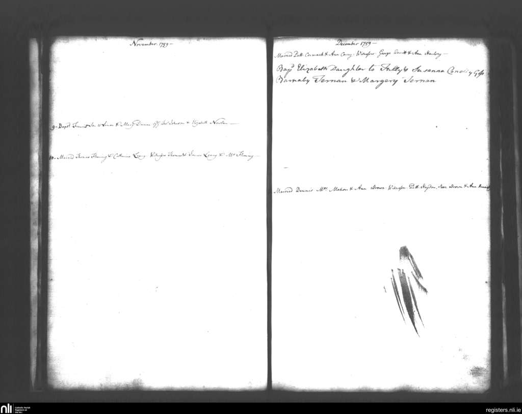 St. Mary's, Dublin city; County of Dublin; Archdiocese of Dublin. Baptisms, Marriages, Nov. 1759 to Dec. 1759