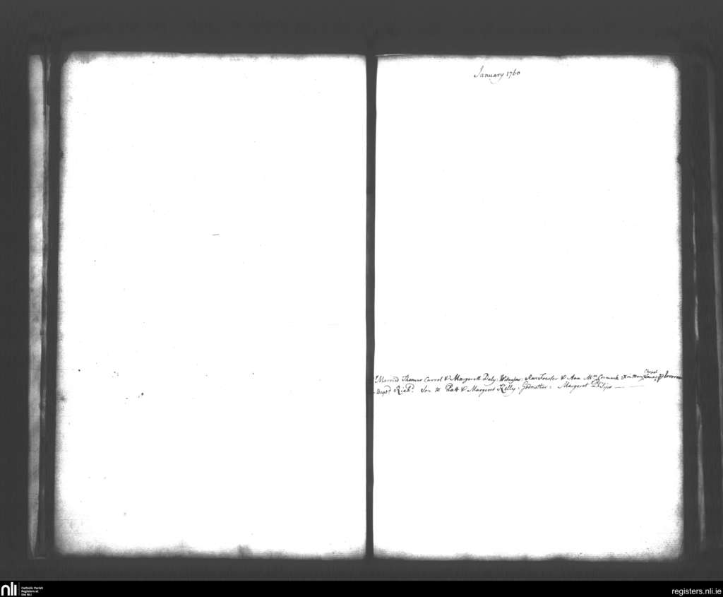 St. Mary's, Dublin city; County of Dublin; Archdiocese of Dublin. Baptisms, Marriages, Jan. 1760