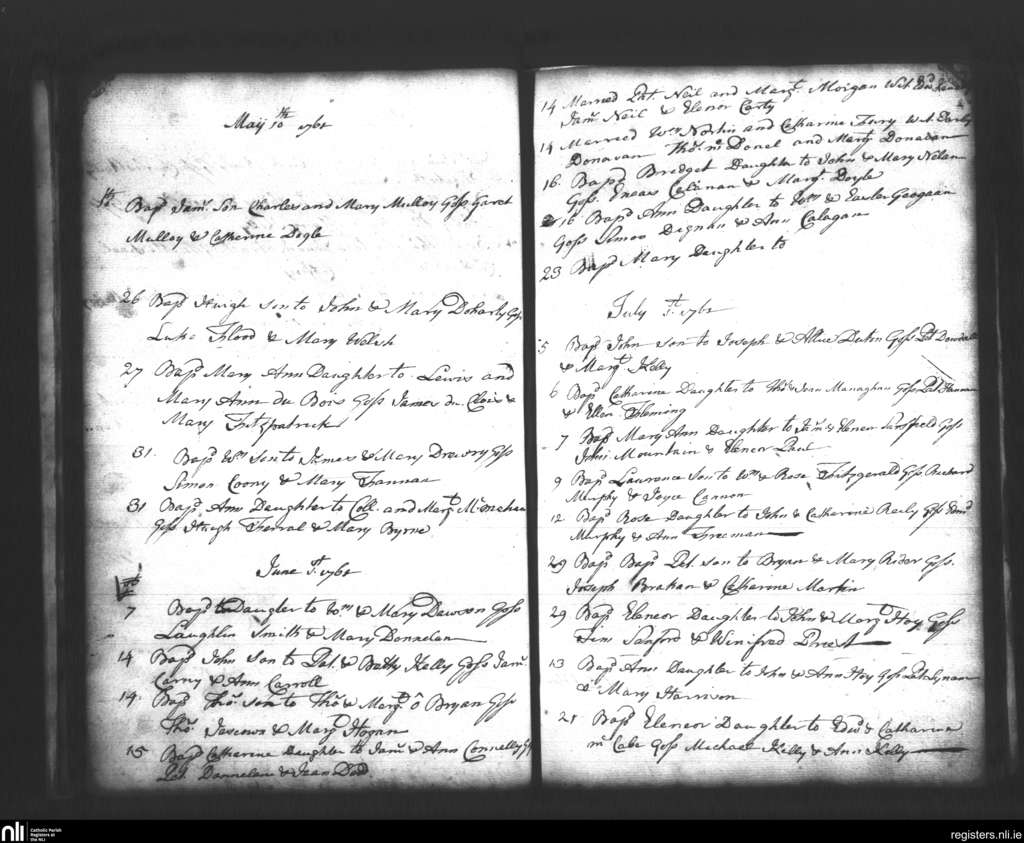 St. Mary's, Dublin city; County of Dublin; Archdiocese of Dublin. Baptisms, Marriages, May 1761 to July 1761