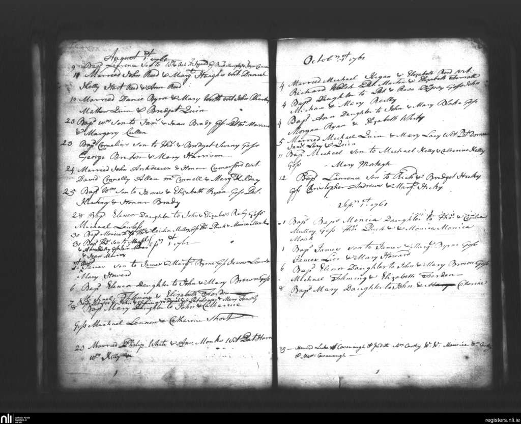 St. Mary's, Dublin city; County of Dublin; Archdiocese of Dublin. Baptisms, Marriages, Aug. 1761 to Oct. 1761