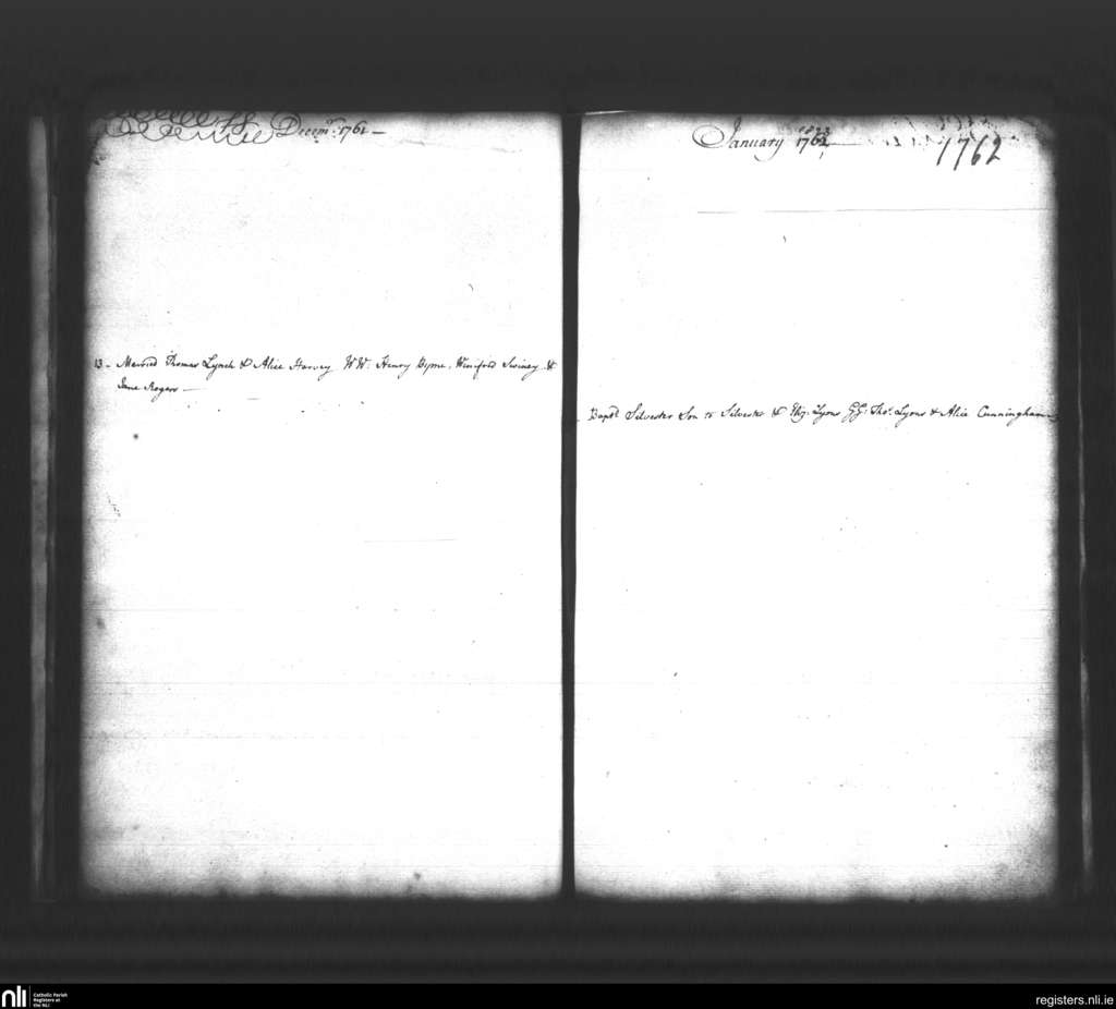 St. Mary's, Dublin city; County of Dublin; Archdiocese of Dublin. Baptisms, Marriages, Dec. 1761 to Jan. 1762