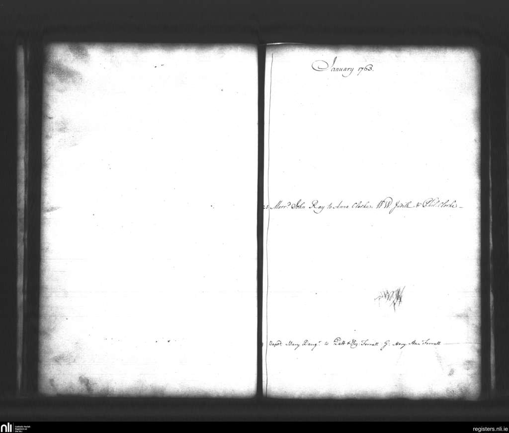 St. Mary's, Dublin city; County of Dublin; Archdiocese of Dublin. Baptisms, Marriages, Jan. 1763