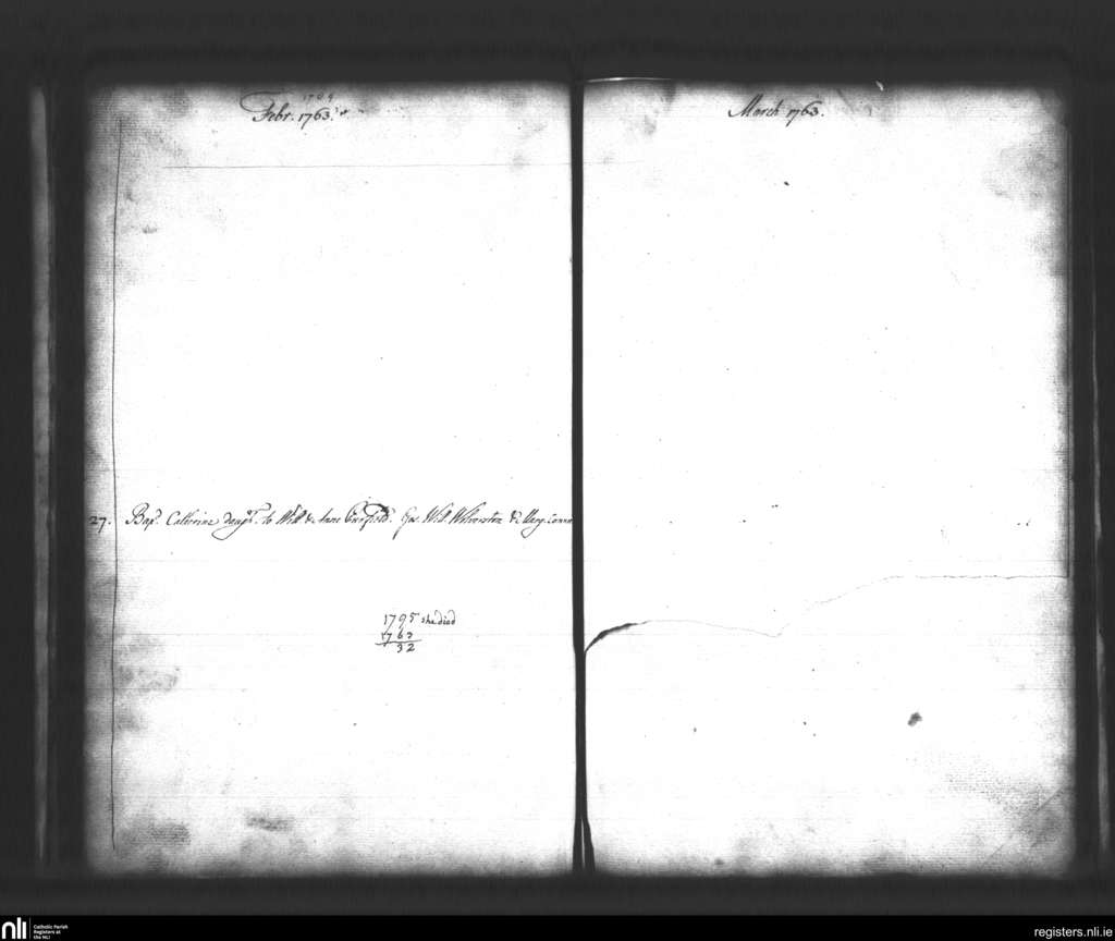 St. Mary's, Dublin city; County of Dublin; Archdiocese of Dublin. Baptisms, Marriages, Feb. 1763 to Mar. 1763
