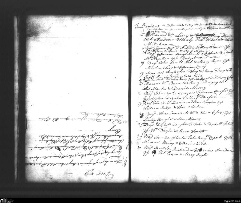 St. Mary's, Dublin city; County of Dublin; Archdiocese of Dublin. Baptisms, Marriages, June 1763 to Dec. 1798
