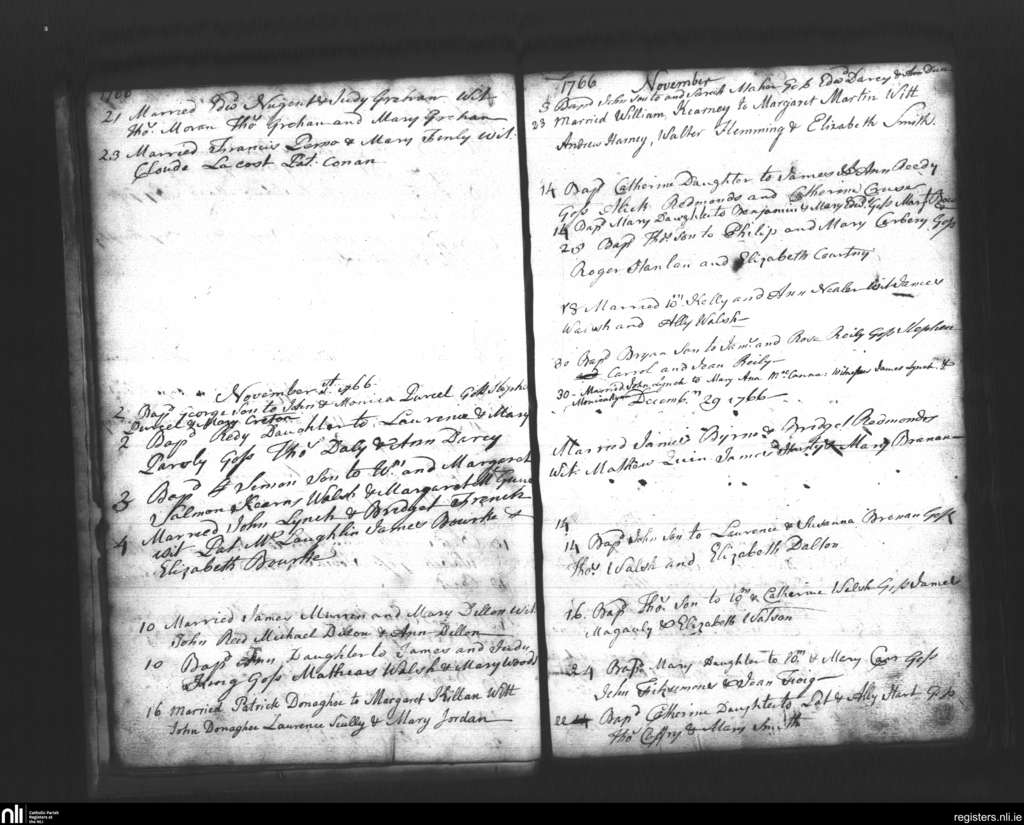 St. Mary's, Dublin city; County of Dublin; Archdiocese of Dublin. Baptisms, Marriages, Oct. 1766 to Dec. 1766