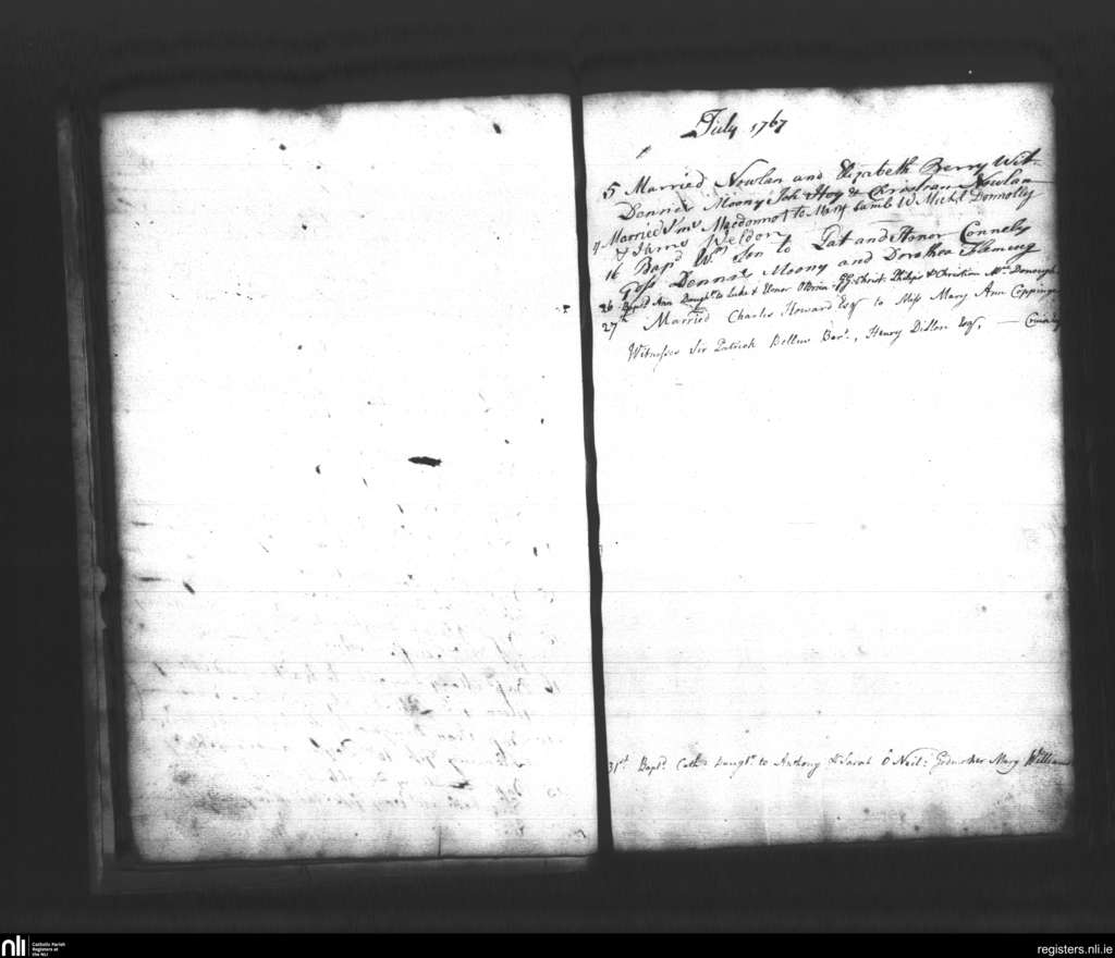 St. Mary's, Dublin city; County of Dublin; Archdiocese of Dublin. Baptisms, Marriages, July 1767