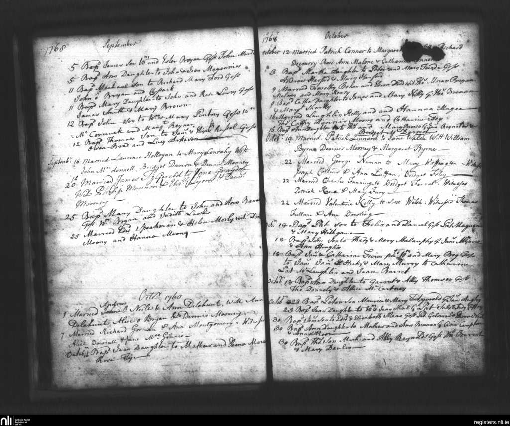 St. Mary's, Dublin city; County of Dublin; Archdiocese of Dublin. Baptisms, Marriages, Sep. 1768 to Oct. 1768